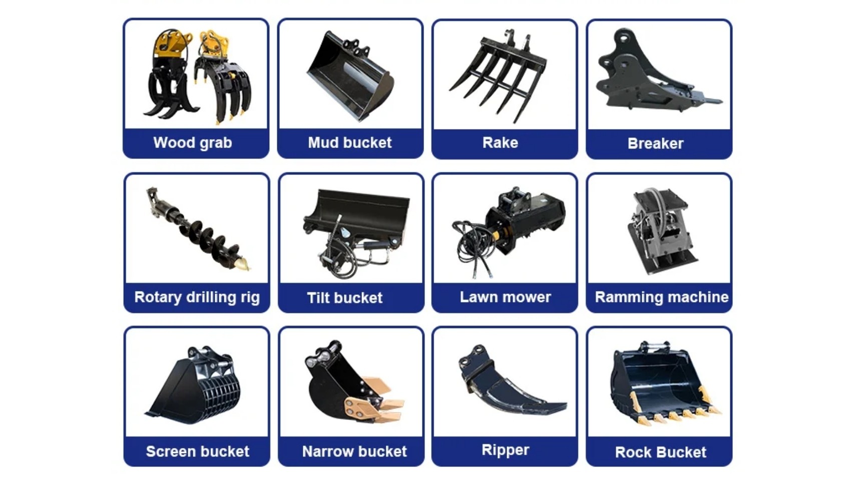 Auger Compactor Plate Hydraulic Hammer Ripper Rake Brush Cutter Leveling Bucket